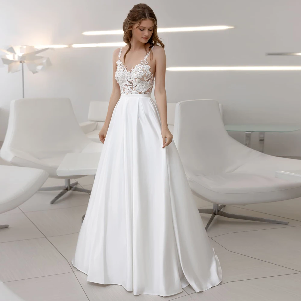Simple A Line Spaghetti Strap V Neck Wedding Dresses Cheap Bride Spaghetti Strap V Neck Wedding Dress