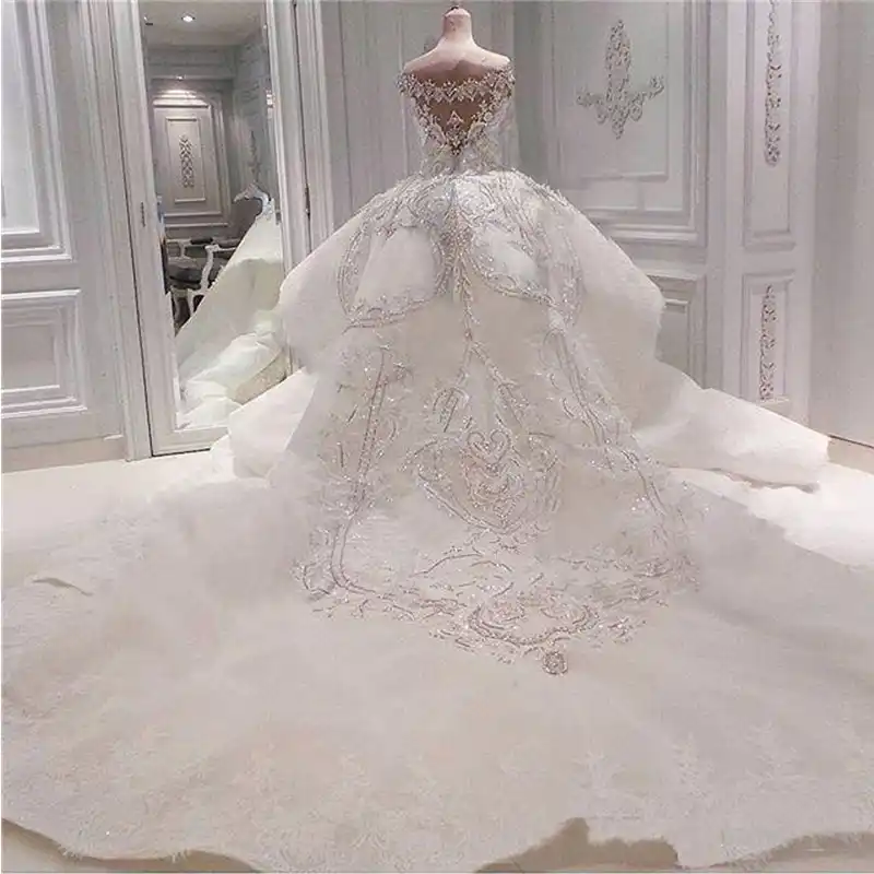 Jw16199 Dreamy Florals Illusion Sheer Back Sparkles Ball Gown Sparkle Mermaid Wedding Dresses With Bling