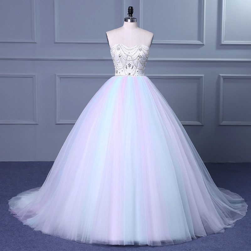 Ball Gown Sweetheart Long Wedding Dresses Sweetheart Beaded Pearls Sparkly Princess Ball Gowns Wedding Dresses