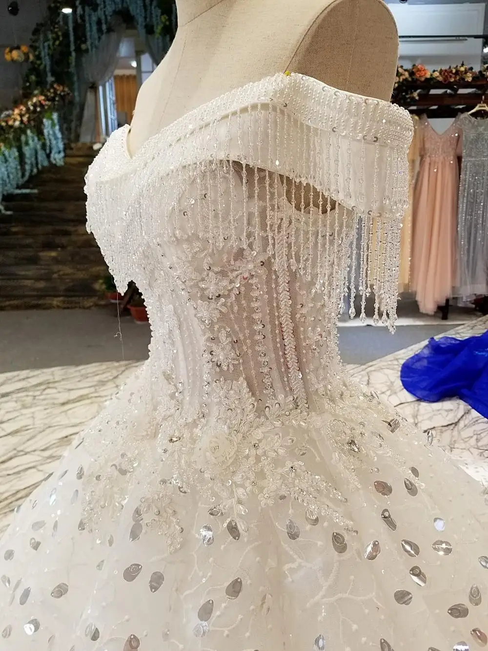 Ball Gown Sweetheart Long Wedding Dresses Sweetheart Beaded Pearls Bodice Princess Arabic Wedding Gowns Corset Back Sparkly Buy At The Price Of 202 17 In Sparkly Sweetheart Neckline Ball Gown Wedding Dress
