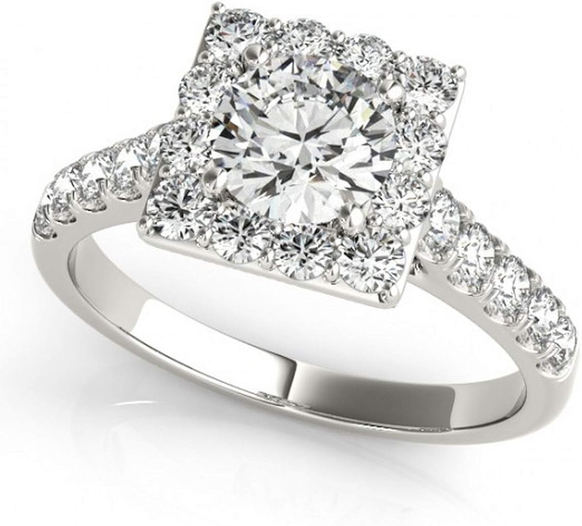 Square Halo Engagement Ring Round Cut Wedding Ring Sterling Etsy Square Shaped Wedding Rings
