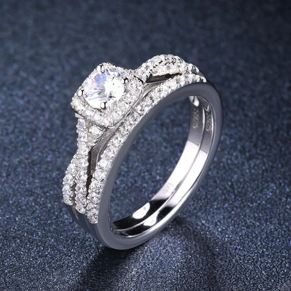 Shop Platinum Over Sterling Silver Cubic Zirconia Bridal Ring Set Sterling Silver Cubic Zirconia Wedding Rings Sets