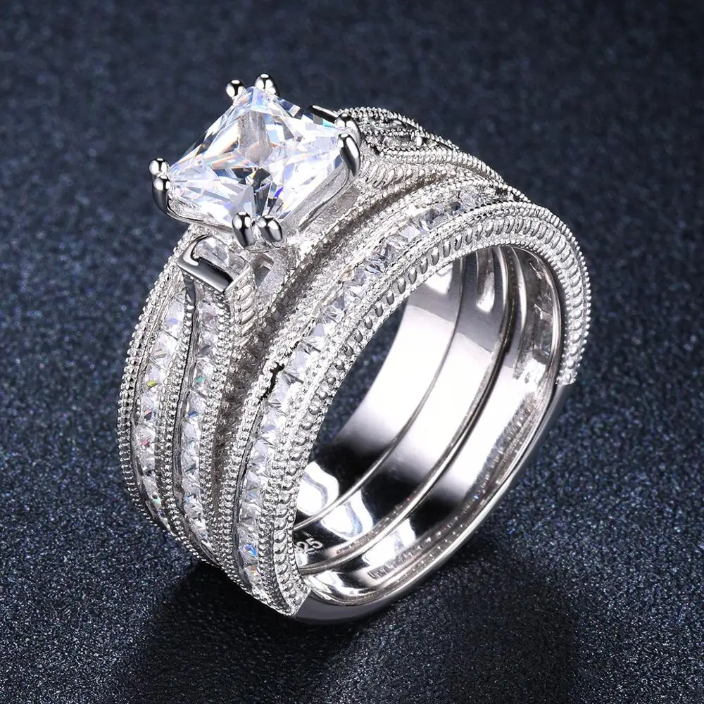 Sterling Silver Cross Sunburst Diamond Wedding Ring Two Ring Set Sterling Silver Diamond Wedding Ring Sets