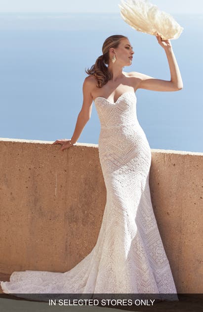 Beaded Lace Strapless Tulle Mermaid Wedding Dress Style Swg810 At Amazon Women S Clothing Store Strapless Lace Trumpet Wedding Dress