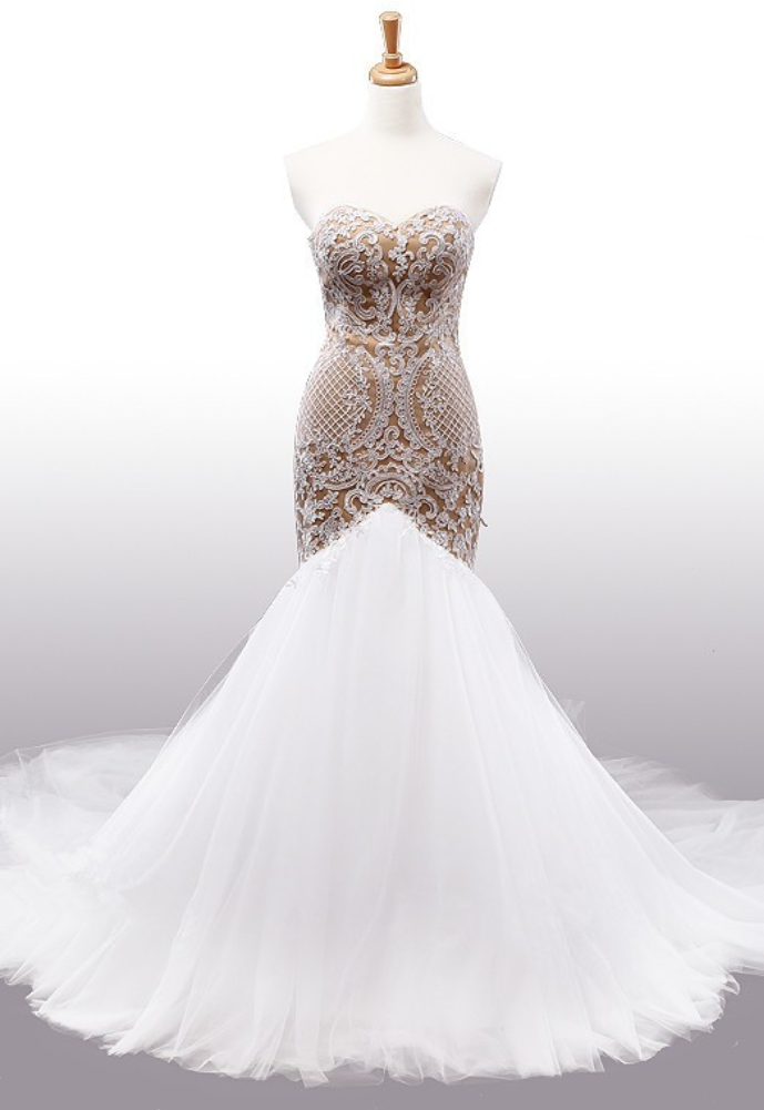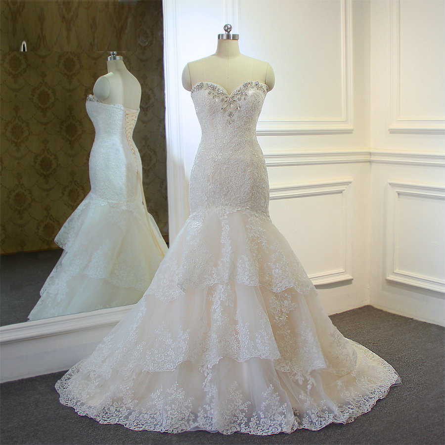 China Sweetheart Lace Mermaid Bridal Gown Ladies Wedding Dresses Strapless Sweetheart Lace Mermaid Wedding Dress