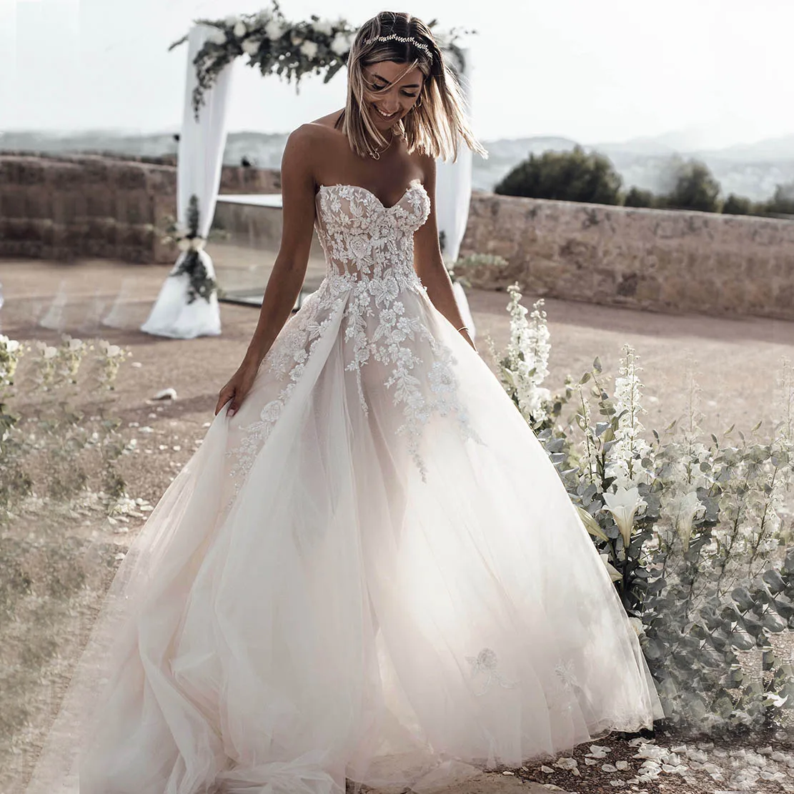 Strapless Satin Beach Wedding Dresses Crystal Backless Simple Strapless Wedding Dress Lace