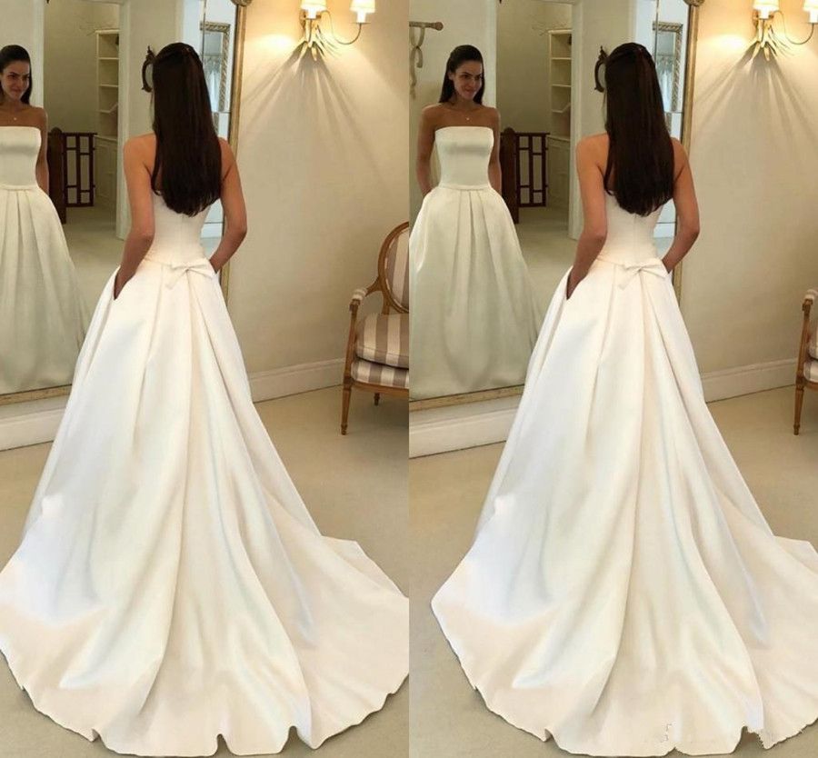 Unique Mermaid Strapless Open Back White Satin Long Wedding Strapless White Wedding Dress
