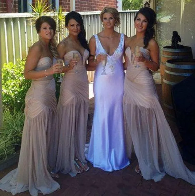 2015 Summer Wedding Party Dresses Sheath Sweetheart Chiffon Ruched Summer Wedding Party Dresses
