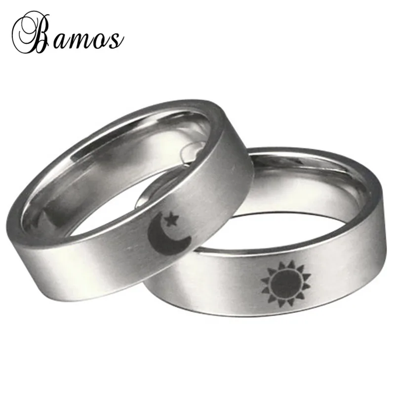 Bamos Simple Sun Moon Engagement Ring Fashion Stainless Steel Couple Wedding Rings For Women Men Minimalist Jewelry Best Gift Engagement Rings Aliexpress Sun And Moon Wedding Rings