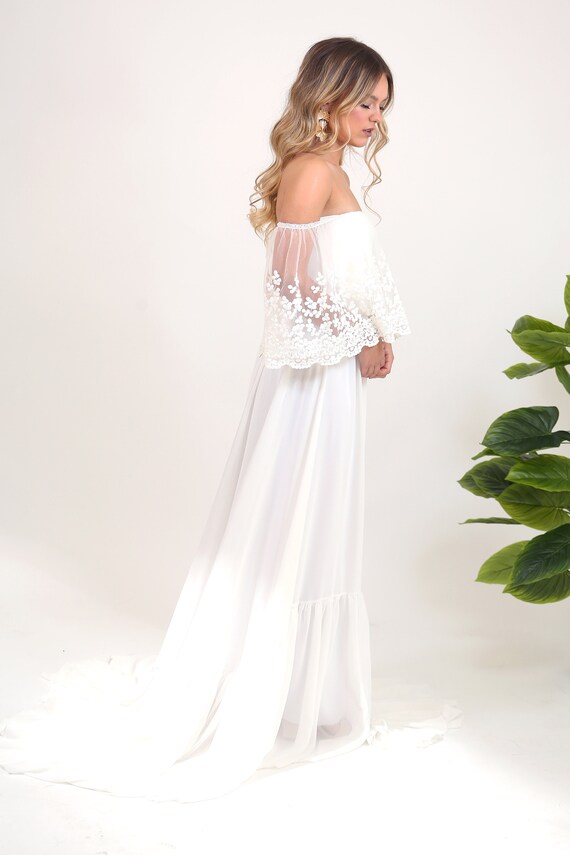 Wedding Dress Stunning Lace Top And Full Circle Skirt With Etsy Super Long Train Wedding Dresses