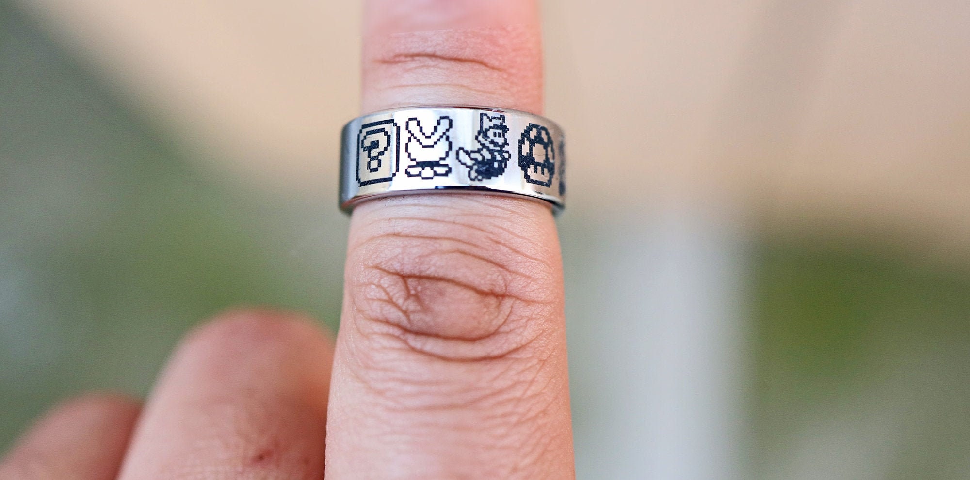 Ygk Hot Sales 8mm Tungsten Wedding Band Ring For Women And Men Super Smash Bros Zelda Metroid Pokemon Mario Bros Star Fox Design Tungsten Sapphire Ring Tungsten Celtic Ringstungsten Mens Rings Aliexpress Super Mario Wedding Ring