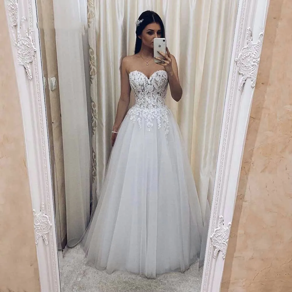 Glamorous Sweetheart A Line Tulle Wedding Dresses With Appliques Sweetheart A Line Tulle Wedding Dress