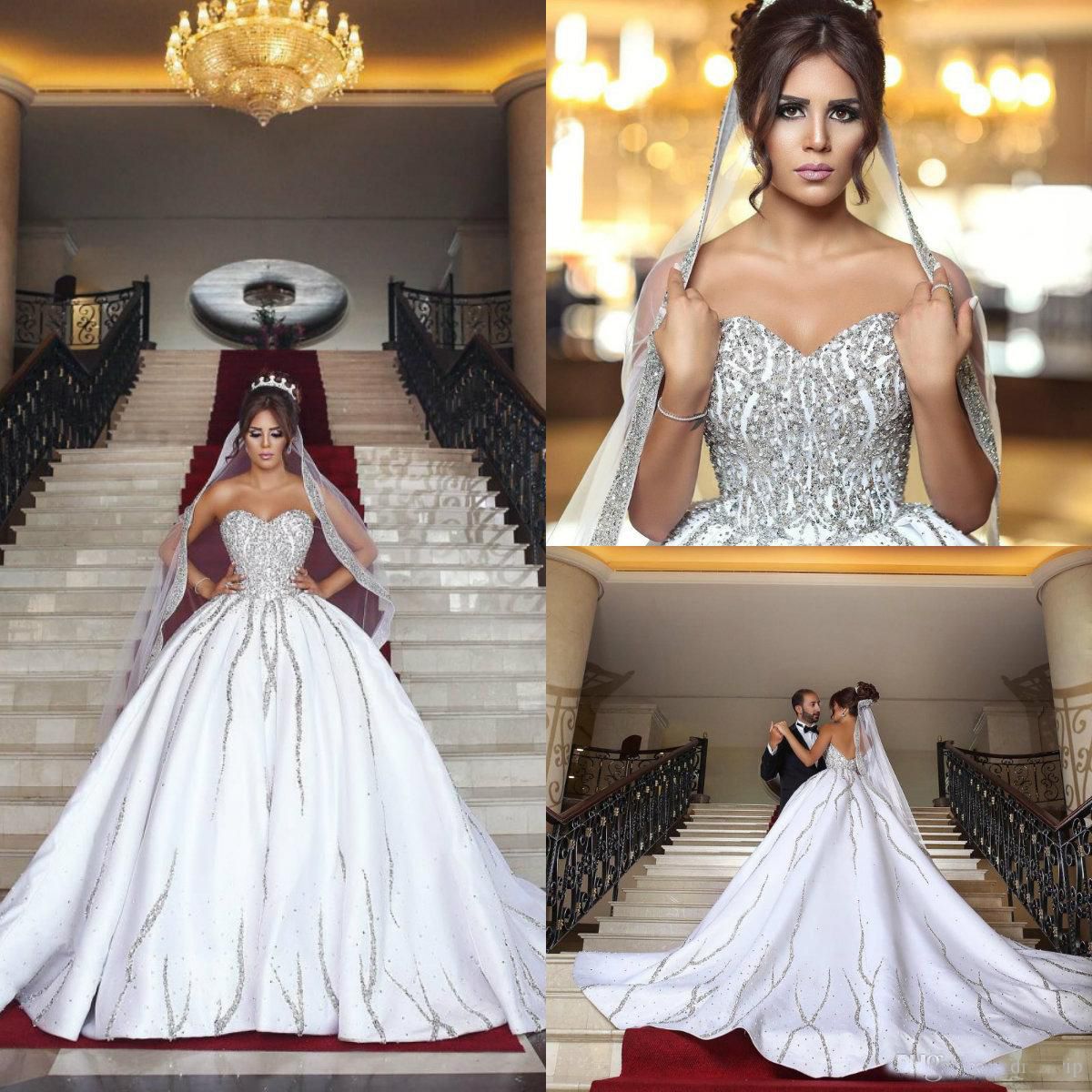 2019 Dubai Arabic Ball Gown Bling Luxury Beading Sequins Wedding Sweetheart Ball Gown Wedding Dress With Veil