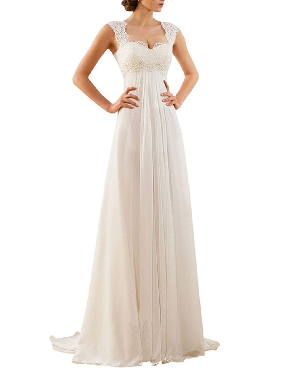 2018 Stylish Empire Waist Sweetheart Sweep Train Chiffon Plus Size Sweetheart Empire Wedding Dress
