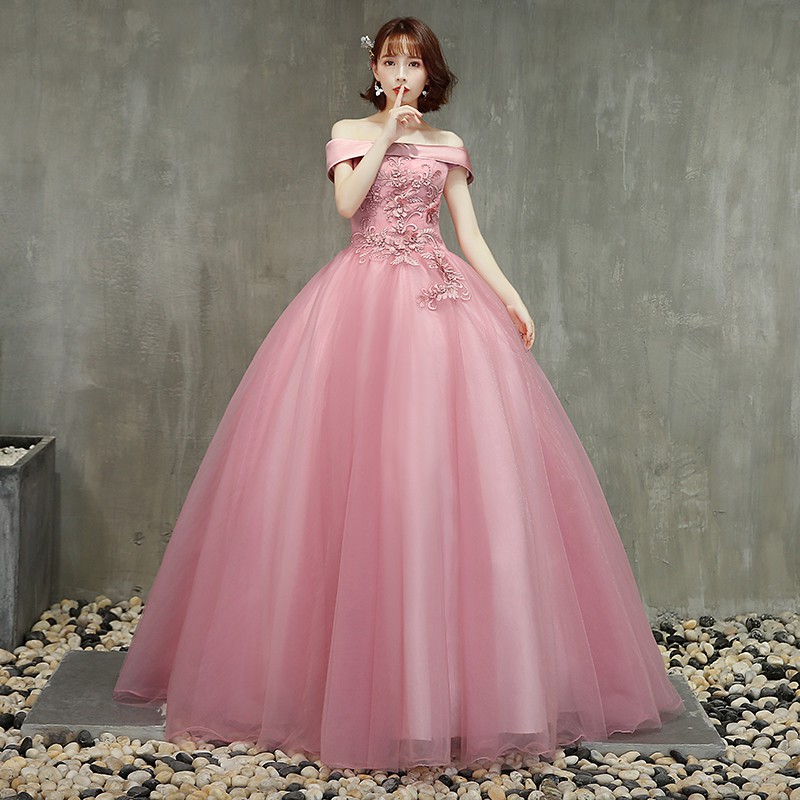 Beaunique Fairytale Pink Sweetheart Satin Ball Gown Tulle Princes Sweetheart Fairy Tail Wedding Dress