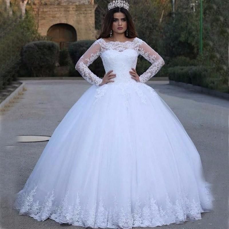 Lace Illusion Neckline Long Sleeve Wedding Ball Gown Vq Sweetheart Neckline Ball Gown Wedding Dress With Sleeves