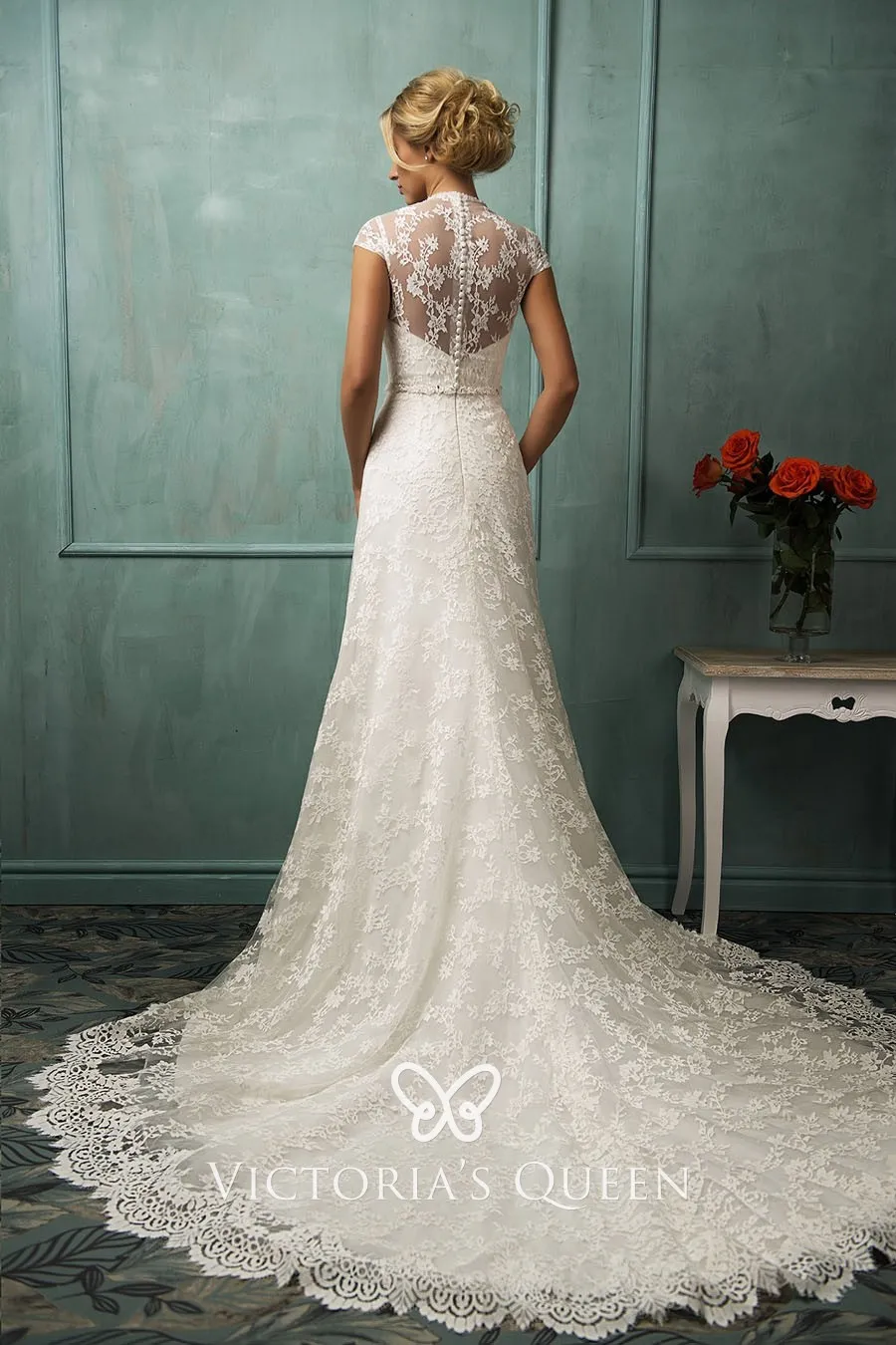 Grecian Shallow Sweetheart Neckline Empire Floor Length Lace Sweetheart Neckline Empire Waist Wedding Dress