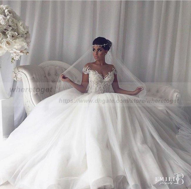 Arabic Bling Beads Ball Gown Wedding Dresses Plus Size Sheer Jewel Sweetheart Neckline Princess Corset Wedding Dresses