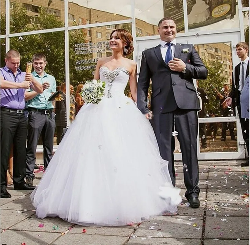 H0806 Beautiful Tulle Ball Gown Sweetheart Neckline Wedding Dress Sweetheart Neckline Strapless Princess Wedding Dresses