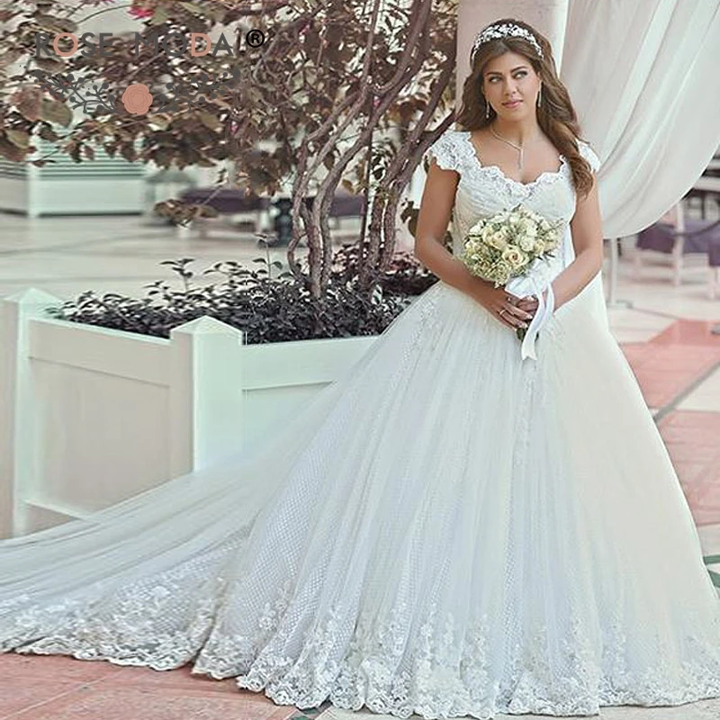 Graceful Cap Sleeve Scoop Neck Ivory White Lace Tulle Wedding Sweetheart Neckline With Cap Sleeves Wedding Dress