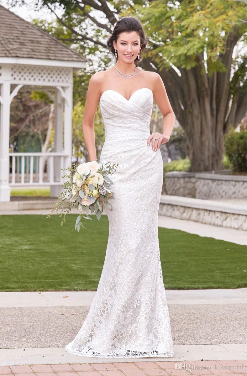 Simple White Lace Wedding Dresses Strapless Sweetheart Neckline Sweetheart Simple Mermaid Wedding Dress