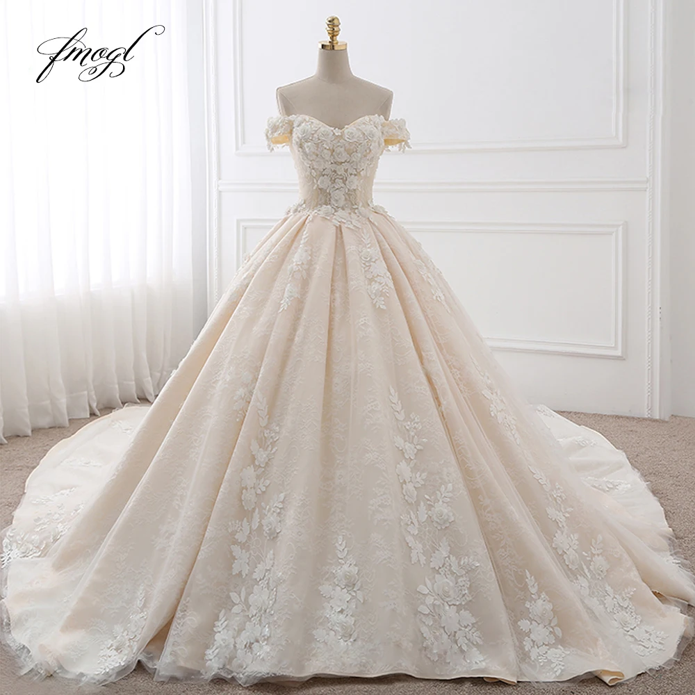 Fmogl Royal Train Sweetheart Ball Gown Wedding Dresses 2020 Sweetheart Vintage Lace Wedding Dresses