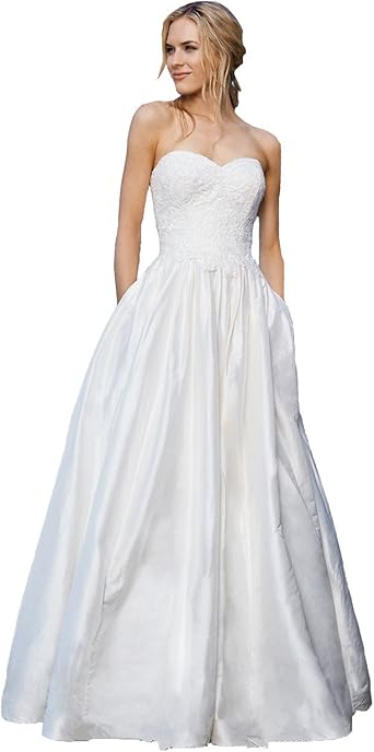 Sodigne Elegant Sweetheart Satin A Line Wedding Dresses With Sweetheart Wedding Dresses With Pockets