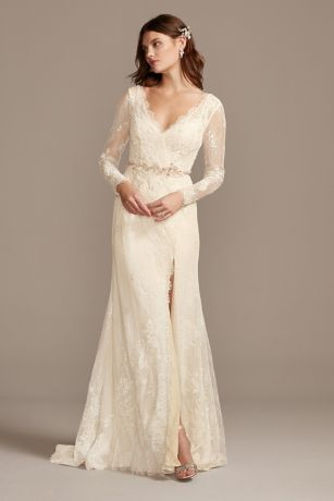 Illusion Long Sleeve Faux Wrap Tall Wedding Dress David S Bridal Tall Wedding Dresses