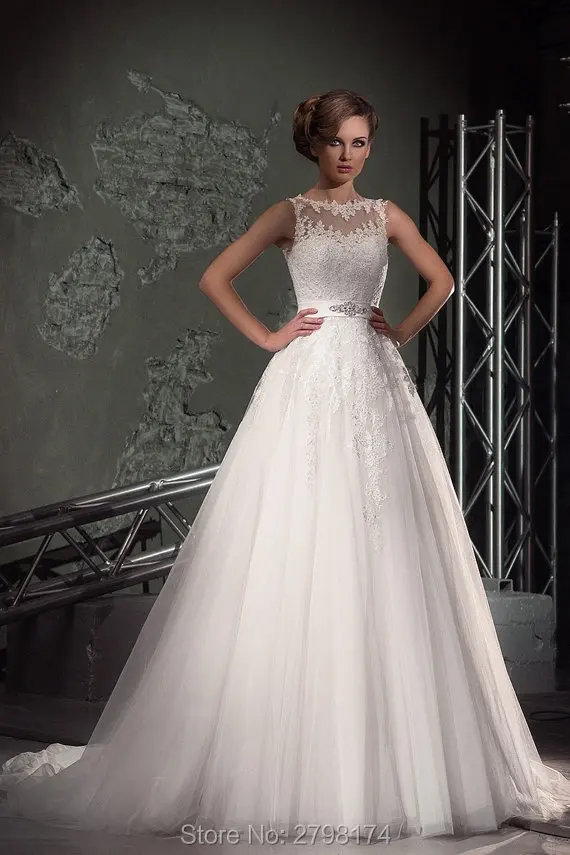 Tank Top A Line Wedding Dresses Crystals Belt Bridal Wedding Gown Tank Top Wedding Dress