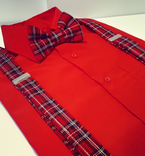 Boys Baby Bowtie Braces Set Wedding Accessories Red Tartan Etsy Tartan Wedding Accessories