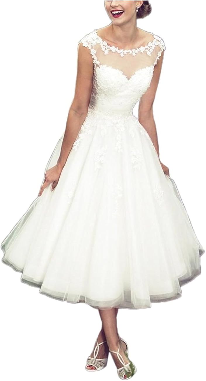 Apxpf Women S Elegant Sheer Vintage Tea Length Lace Wedding Dress Tea Length Lace Wedding Dresses With Sleeves
