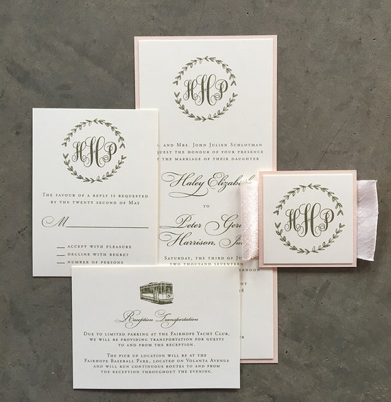 Drawn Laurel Tea Length Thermography Wedding Invitation Etsy Tea Length Wedding Invitations