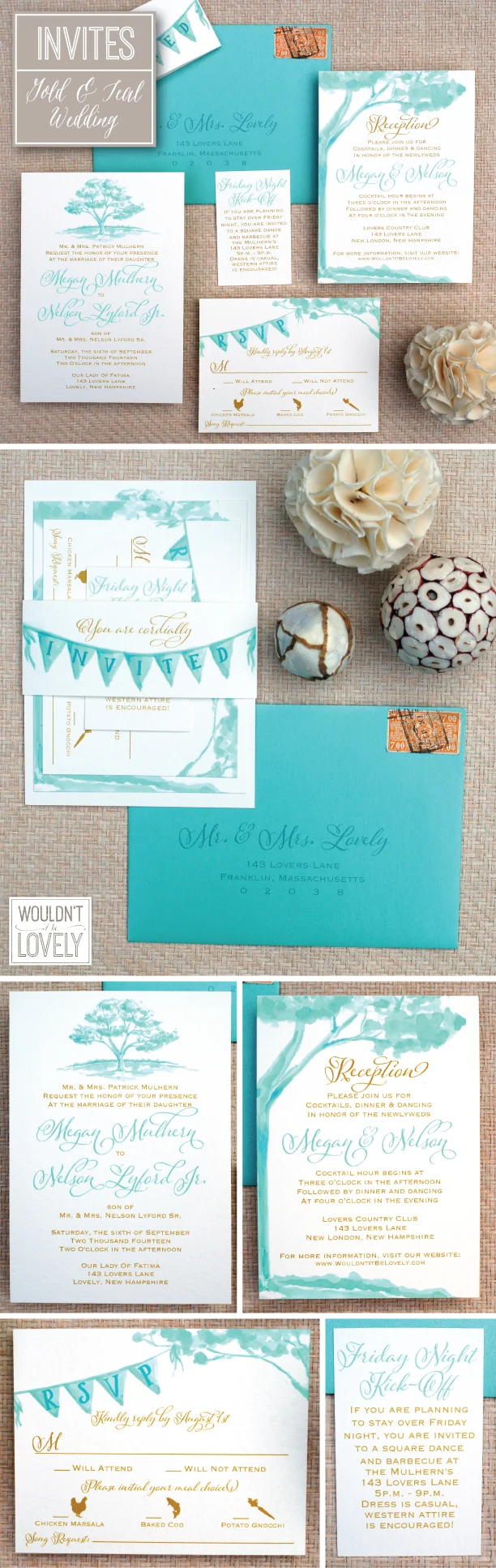 French Romantic Teal And Gold Wedding Invitations Teal And Gold Wedding Invitations