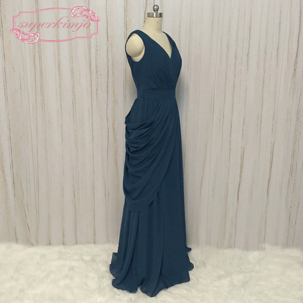 Superkimjo Chiffon Cheap Bridesmaid Dresses Long Teal Blue Pleated Teal Color Dress For Wedding Guest