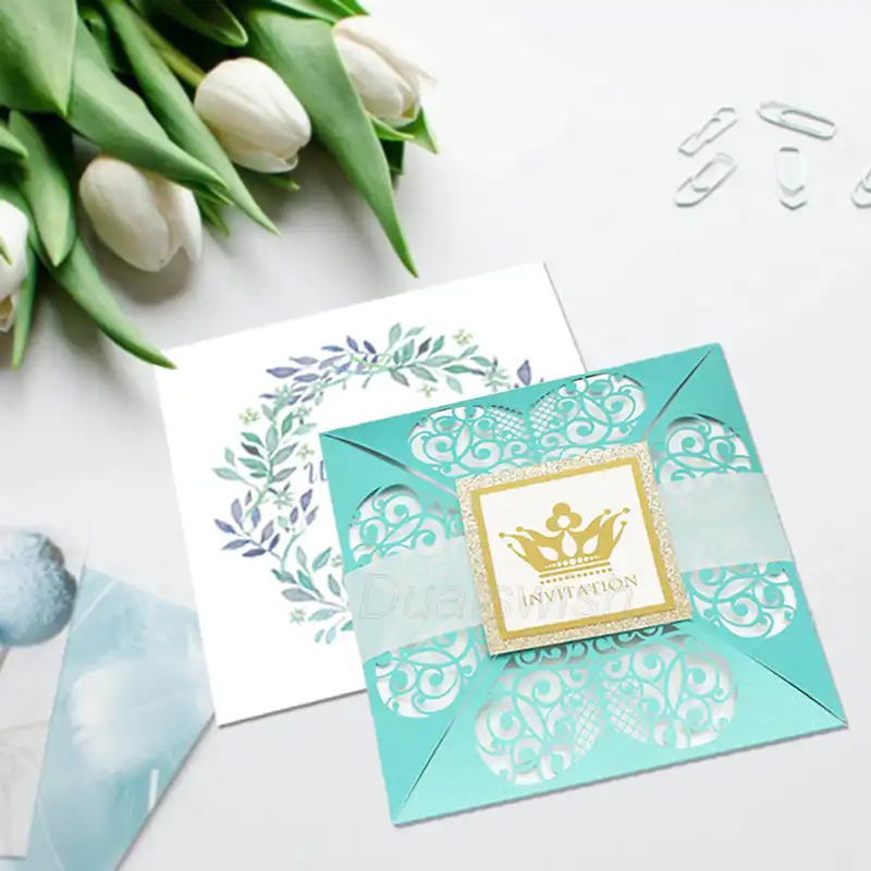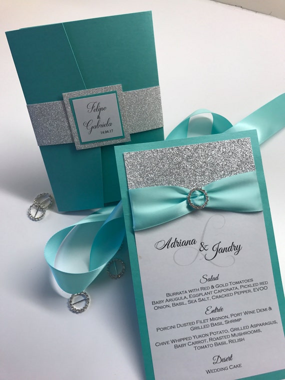 Aqua Marine White Floral Wedding Invitation With Printed Ribbon Teal Invitations Wedding