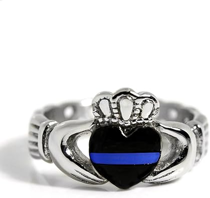 Thin Blue Line Lord S Prayer Blue Ip Beveled Edge Stainless Steel Thin Blue Line Wedding Ring