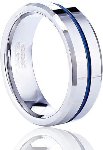 Tusen Jewelry Thin Blue Line Tungsten Carbide Ring Wedding Band Thin Blue Line Wedding Ring