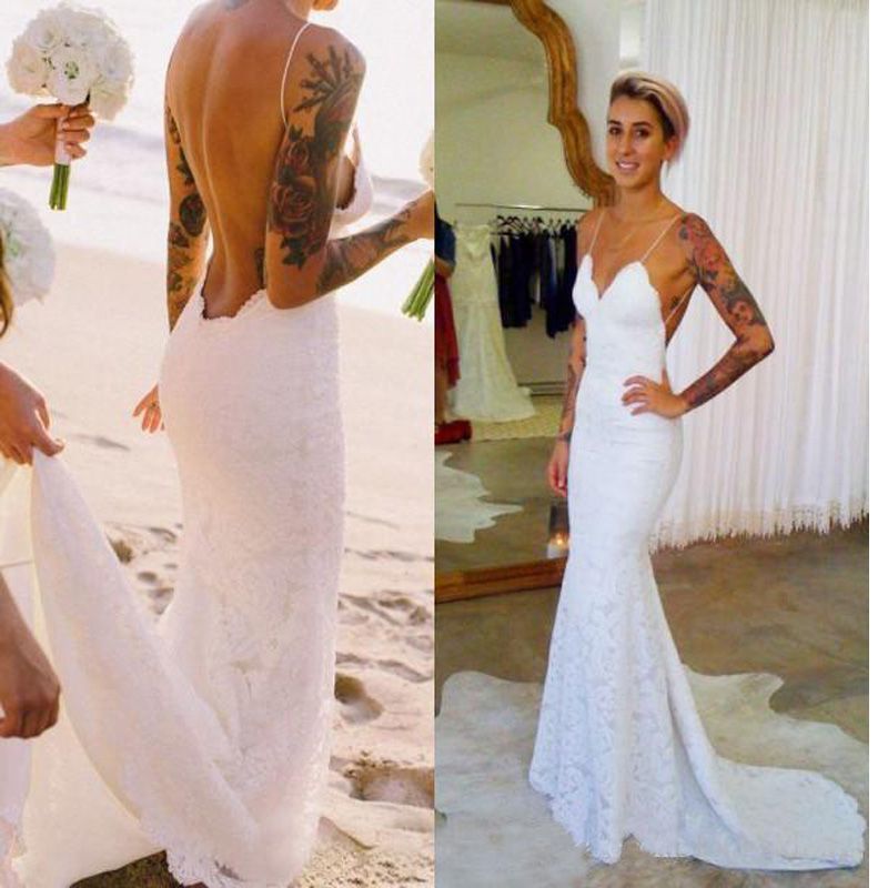 Sexy Backless Wedding Dresses Lace Applique Thin Shoulder Strap Thin Strap Backless Wedding Dresses