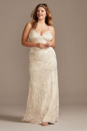 Skinny Strap Sequin Plus Size Lace Wedding Dress David S Bridal Thin Strap Wedding Dress