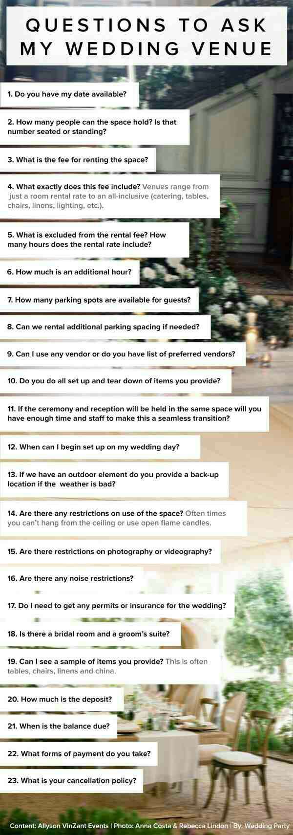 Questions To Ask Your Wedding Venue By Tipsforyou By Mallory Things To Ask Your Wedding Venue