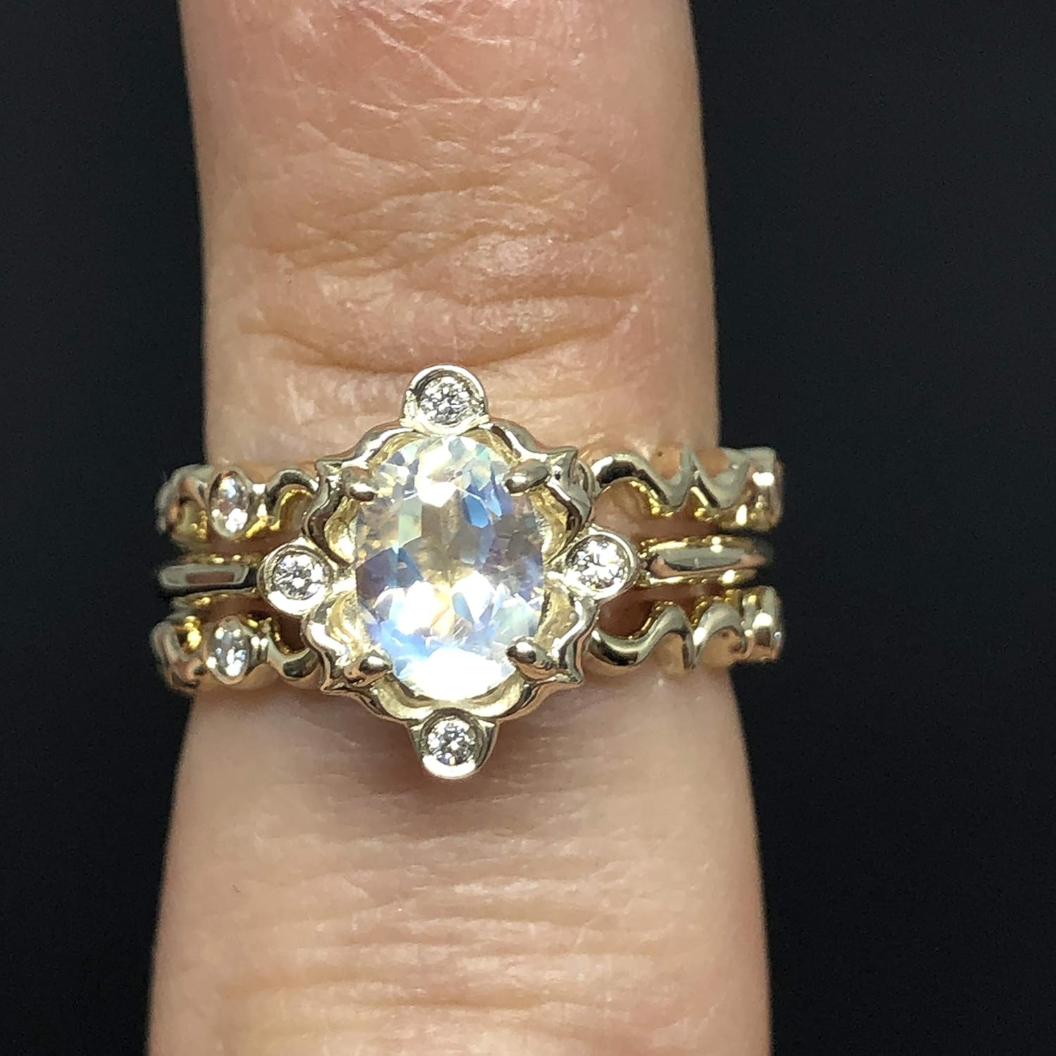 Amazon Com Moonstone Ring Engagement Wedding Three Ring Bridal Three Ring Wedding Sets