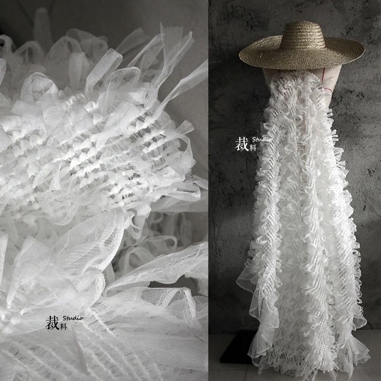 Vintage Wedding Dress Embroidered Tulle Fabric Beaded Strapless Tulle Fabric For Wedding Dress