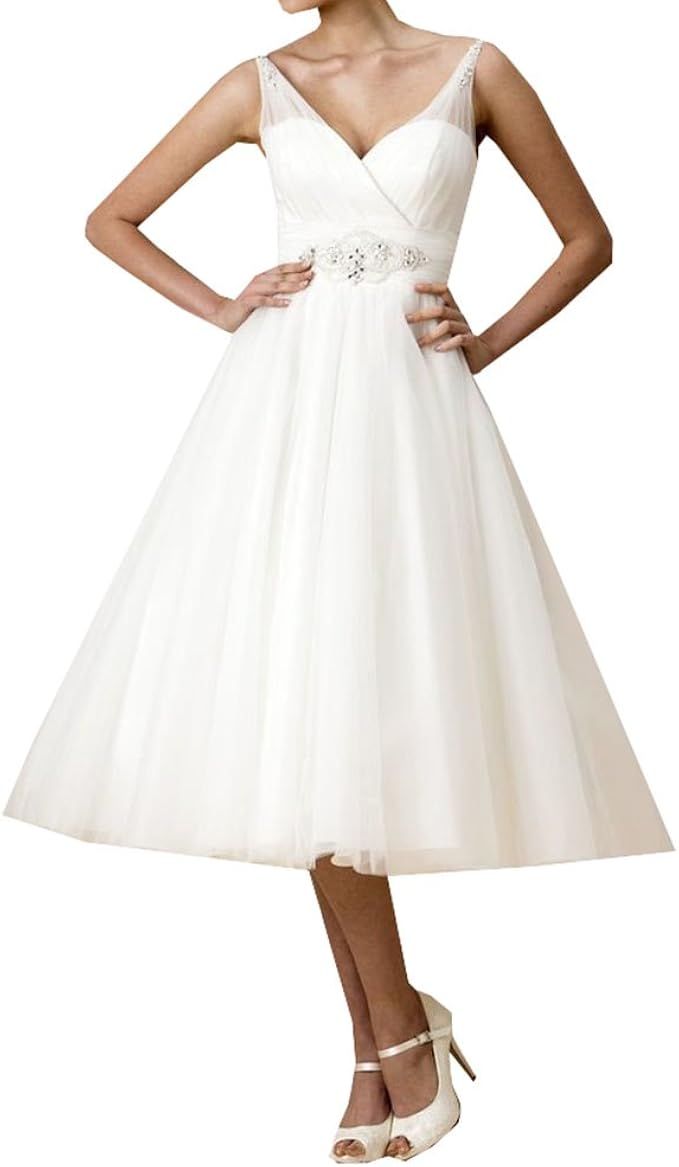 White Tea Length Short Wedding Dress Dot Lace Tulle Bride Ball Tulle Short Wedding Dress