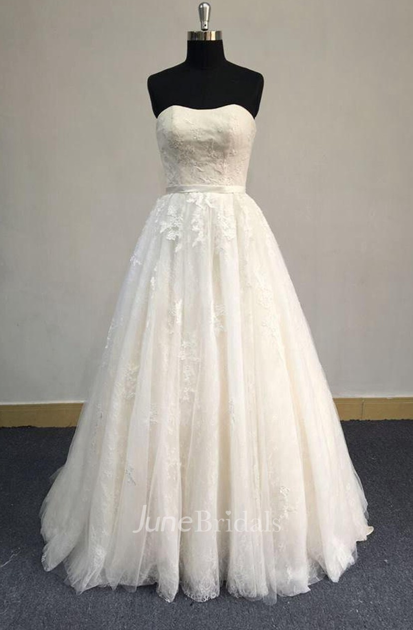 Sweetheart Strapless Lace Up Ivory Beaded Corset Bodice Classic Tulle Wedding Dress Strapless