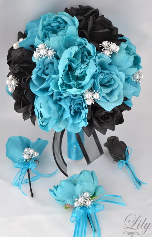 Black Lace And Dark Blue Taffeta Wedding Dress With Crystals Turquoise And Black Wedding Dresses