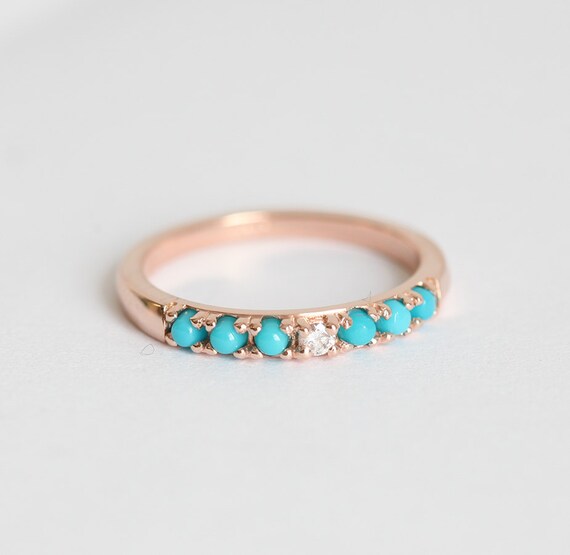 Turquoise And Diamond Ring Turquoise Diamond Band Rose Gold Etsy Turquoise And Diamond Wedding Ring