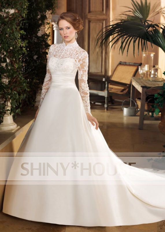 White Satin High Neck Long Sleeve Wedding Dress With Button Kali Turtle Neck Wedding Dress