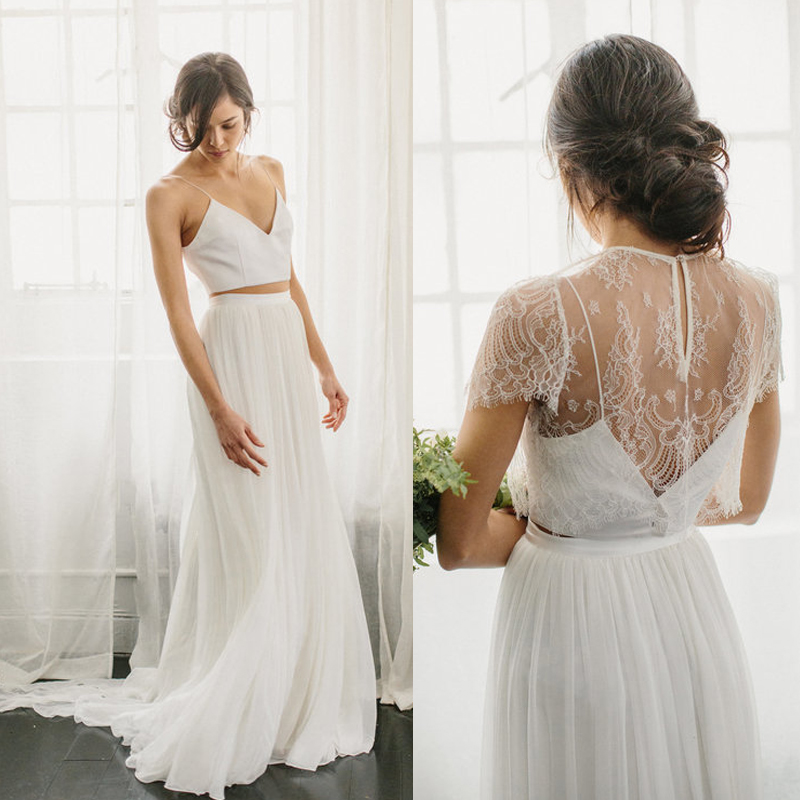 Discount Fabulous Two Piece Lace Wedding Dresses Half Long Sleeve Two Piece Tulle Skirt Wedding Dress