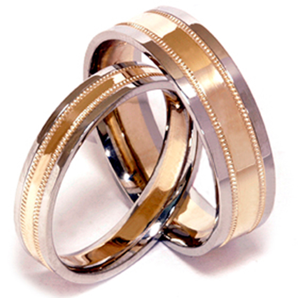 18k Yellow White Gold His Hers Two Tone Wedding Band Set 273 Two Tone Gold Wedding Ring Sets