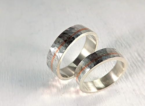 Amazon Com Mixed Metal Wedding Band Set Unique Wedding Rings Two Tone Personalized Wedding Rings Silver Hammered Matching Ring Set His And Hers Handmade Unique His And Hers Wedding Rings